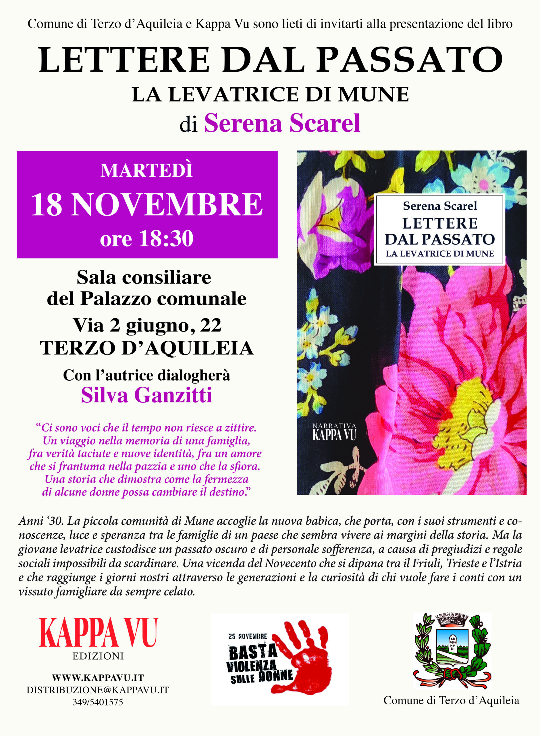 **** MARTEDI’ 18 NOVEMBRE alle ore 18:30 presso la Sala consiliare del Comune di Terzo d’Aquileia (via 2 giugno, 22). Con l’autrice dialogherà Silva Ganzitti ****