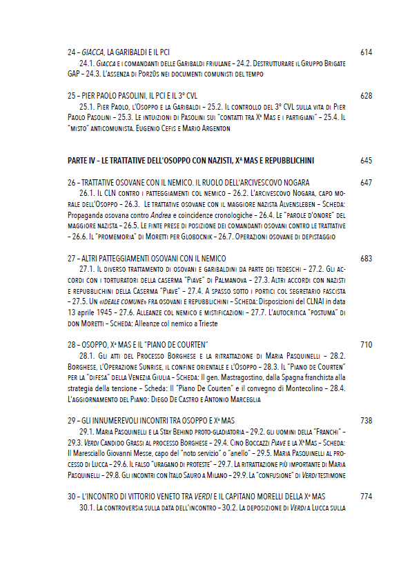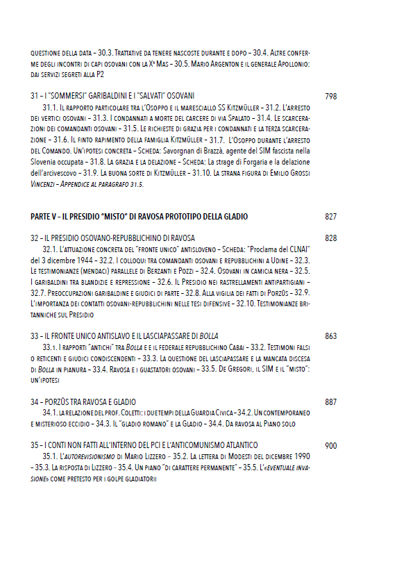 Sul “confine orientale” si sono intersecati i principali nodi della Seconda guerra mondiale e della successiva Guerra fredda, anzi la vicenda di Porzûs ne è stata un’anticipazione a guerra calda ancora in corso. È stata presentata poi come la giustificazione di Gladio, mentre ne è la sua prima manifestazione: tecniche d’infiltrazione, segretezza, false flag, manipolazione propagandistica e poliziesca, convivono qui in un trait d’union fra i mezzi e fini che erano stati del fascismo e quelli che saranno dell’atlantismo. Un filo che ci porta ad anni più recenti, a nomi e organizzazioni della strategia della tensione che ha insanguinato l’Italia nel dopoguerra: Borghese, Sogno, De Lorenzo, Angleton, e oltre, fino alla P2. Mezzi e strategie di guerra psicologica e “controrivoluzionaria” per combattere il partito comunista e l’afflato di cambiamento che era emerso dalla lotta di Resistenza.